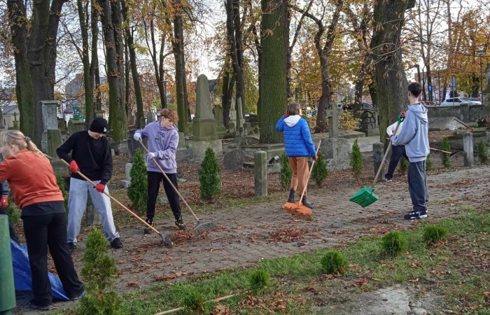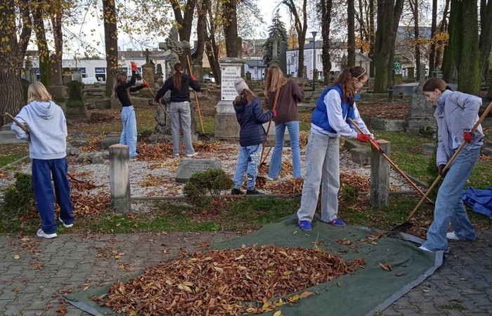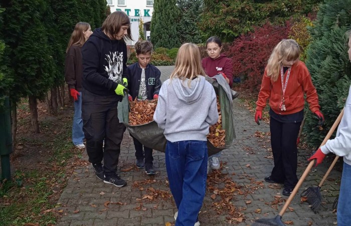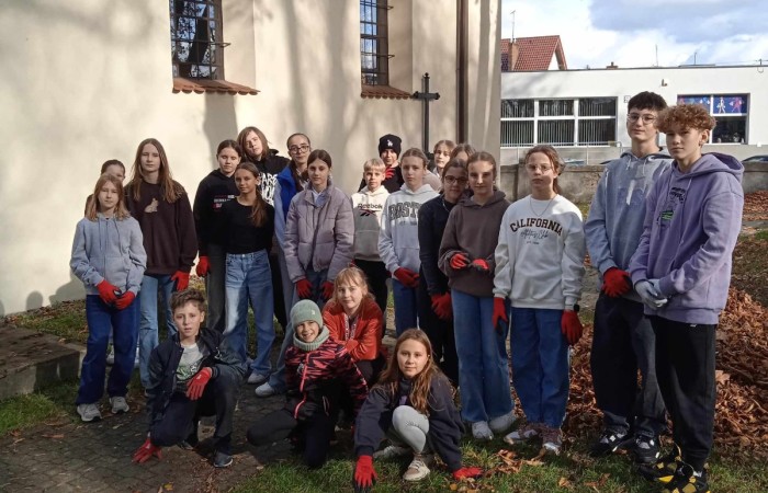 W dniu dzisiejszym wolontariusze SKW i SKC wzięli udział w akcji sprzątania cmentarza przy kościele św. Stanisława.